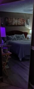 Soon after Bill’s passing, I went to Sam’s Club to purchase supplies and groceries. As I was walking along the aisles, I saw a full-length, very sturdy mirror. It had a gold frame and stand so it could be adjusted. I’d always wanted a full-length mirror because I was never quite sure how I looked from the waist down. I would stand on my bed to look into the mirror above our dresser to get a full-length view. This mirror was nice. Without hesitation, I picked it up and put it in my cart. At the time, I was very distressed, and shopping had completely changed. It took a long time to shop without crying.